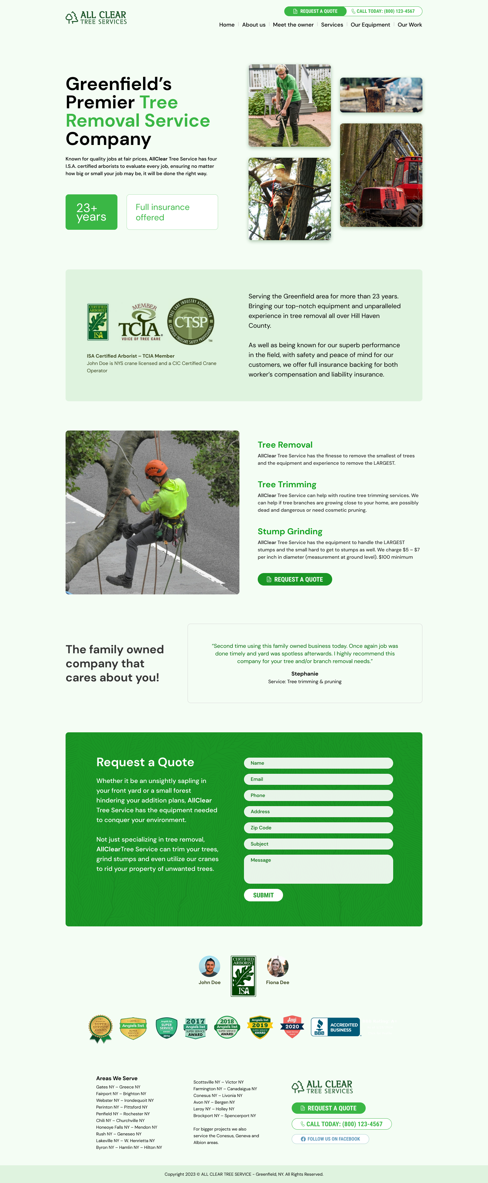 Tree removal website focused on safety, services, and simple quote requests.