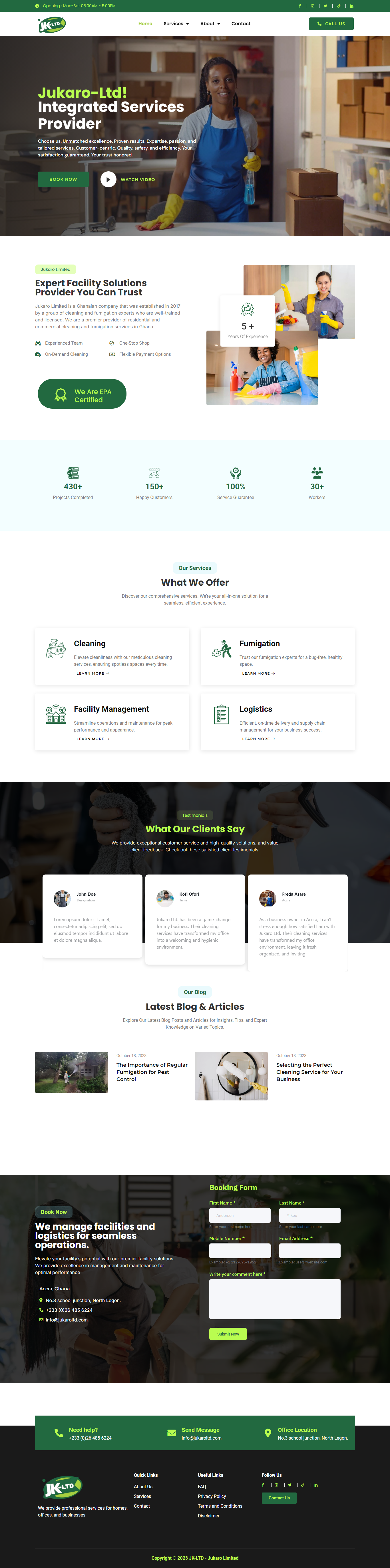 Cleaning & fumigation services website with strong service showcase.
